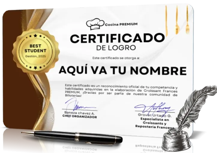 Al finalizar el Libro de Recetas Premium, vamos a reconocer tu esfuerzo y práctica con un Certificado de Finalización con tu nombre.